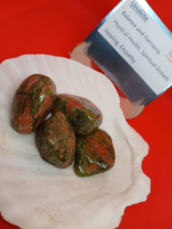 Unakite is a gemstone that symbolizes balance and harmony. It is associated with the heart chakra and emotional healing, helping to release negative emotions and promote positivity. Unakite is also known for its practicality, patience, and celebration of new beginnings. It is composed of a mix of pink Feldspar, Red Jasper, and Green Epidote, creating a unique and solid combination that symbolizes the concept of unity.