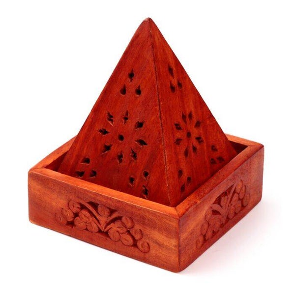 Mango Wood Pyramid Incense Cone Box with Flower Fretwork